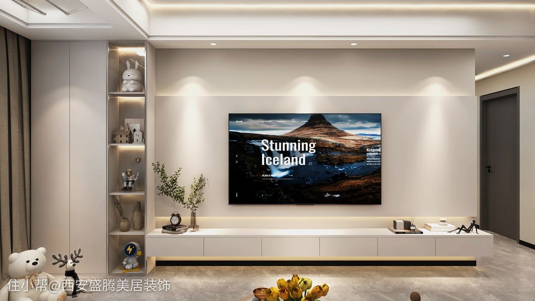 今天小編發的是2023年比較網紅款式的電視背景墻,懸空的電視柜,加上中部凸起的電視墻+上燈帶條,讓電視墻有著不一樣的簡約感,貼近當代人的優雅風哈。